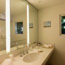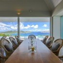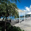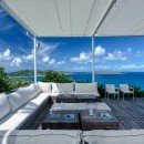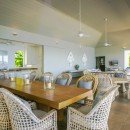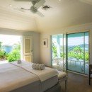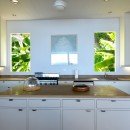 Rattan and wood furnishings keep the island theme consistent, and map out the lovely living room with TV lounge, the casual breakfast area and a more formal and spacious dining suite. Nearby is the entrance to the oversized kitchen. With a large island and professional-quality appliances, it is done in a pure white with natural stone floors and countertops that capture the natural light. Open to the views, it allows you to work in the kitchen without missing a single, delicious breeze.
