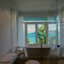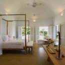 The four bedrooms are housed in individual bungalows and each is a personal little world of its own. There is a queen suite with private terrace, dressing room, enormous private bath and mini fridge. There is another queen suite that also has a dressing room and terrace along with the ensuite bath. The two other suites are dual twin suites. One is adjacent to the pool but has terraces in the garden and facing the sea.