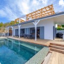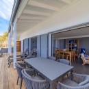 For many, the focal point is the pool terrace that stretches the length of the villa and wraps one end. From here you gaze down towards Colombier and Gustavia, though you may also marvel at the amazing sea views, too. The terrace features an infinity edge pool framed by wooden decking and backed by the elegant, cool and well shaded portico. Tucked beneath it you have further lounging areas in addition to a spacious outdoor dining suite.