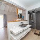 Bedroom 1: Bedroom with a king-size bed, A/C, ceiling fan, Safe, TV with French Satellite, terrace with ocean view and en-suite bathroom with indoor and outdoor showers, vanity and WC. 2 guests maximum.