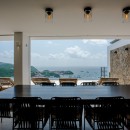With floor to ceiling doors, the interiors have an open-air feel that is impossible to resist, too. The great room uses and open floor plan to further emphasize the setting and relies on low-key, modern furnishings and a soothing palette of cream and stone (with appealing bursts of red), to keep things amazingly relaxing. There is a large, formal dining room space, a media room with oversized banquette sofa, and a large, modern kitchen. Furnished with the very best appliances and gear, it allows you to make even a complex meal while remaining in full site of the terrace and views.