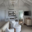 This exquisite villa comprises three air-conditioned bedrooms, each featuring a king-size bed and an adjoining bathroom. The first bedroom is located on the same level as the living room, while the second is housed in a separate bungalow just a few steps down. The third bedroom is situated on the same level as the swimming pool. All bedrooms open onto ocean-view terraces, adorned with comfortable armchairs, creating a cozy and inviting atmosphere. It is the perfect place to unwind after exploring the island or enjoying a refreshing swim in the pool under the warm Caribbean sun.