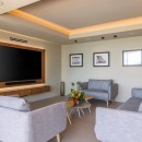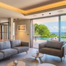 You may never want to leave the deck with such beautiful sights and top-tier accommodations, but the interior offers a delight all the same. Step into the two-level villa into the spacious living room, complete with a generously sized flatscreen TV and lavish seating.