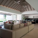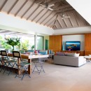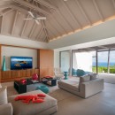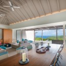 There is an expanse of covered terrace furnished with great style and comfort, designed to allow you to enjoy the views at sunrise, sunset and even beneath starry skies. An al fresco dining area is here too, and indoors the décor is streamlined and welcoming. There is a great room with high, blonde wood ceilings and satiny smooth terrazzo floors. It features an open floor plan that includes the large living room, dining area and kitchen.