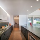 The living room has a banquette and entertainment center, the dining room is nearby and leads to the remarkably modern kitchen. With solid black cabinetry, it is a sleek and beautifully appointed space in which to make meals or drinks. Premium appliances ensure each task is easy and enjoyable.