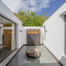 Inspired by the golden age of jazz, Villa My Way pays tribute to musical legends with elegant, minimalist décor and tasteful nods to icons like Frank Sinatra, whose photos grace the whitewashed walls. A stunning grand piano anchors the expansive open-plan living room, where plush, low-profile sofas invite guests to unwind in serene comfort. The air-conditioned lounge also has a giant screen and projector, setting the stage for memorable movie nights.