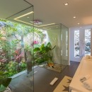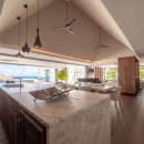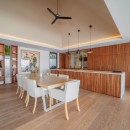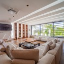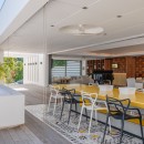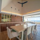 At the rear of the villa, the sleek, fully equipped kitchen is ideal for culinary endeavors, while the adjoining breakfast bar is perfect for casual conversations over coffee or cocktails.
