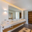 Villa My Way features five generous, air-conditioned bedrooms, each with a king-size bed and private en-suite bathroom. All but one offer stunning ocean views. Two suites open directly onto the terrace, while two others are located on the lower level for added seclusion. One additional bedroom sits just behind the main living area. For guests who like to stay active, an air-conditioned fitness room with ocean views rounds out the villa’s luxurious amenities.