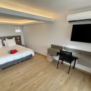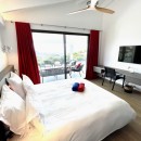 Bedroom 3: Lower floor bedroom with a king-size bed (can be converted into two single beds), A/C, TV, WiFi, view of mountains and ocean, and en-suite bathroom with shower, vanity, and WC. 2 guests maximum.