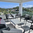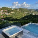 Villa Voyage boasts beautiful and sunlit terraces, including an upper-level terrace with a covered dining area that accommodates twelve guests, providing an incredible view. A separate lounge area invites you to savor cocktails in the gentle tropical breeze. An outdoor staircase leads to the lower terrace, featuring a delightful swimming pool and a six-person Jacuzzi. Sunbeds are thoughtfully placed for your sunbathing pleasure. Additionally, an outdoor living room, nestled under a covered area, is perfect for al fresco dining. A ping pong table adds to the entertainment options, ensuring memorable moments in a private atmosphere.