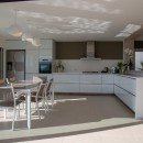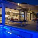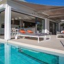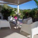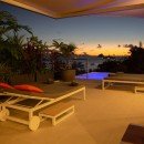 With a large canopy covering the lounge space, the terrace is framed with potted palms and offers optimal privacy from neighbors while not impeding any of the stunning sea views. There is the wonderful al fresco living room, but nearby is also some dining space, and at the end of the terrace, flooded by sunlight, is the infinity edge pool. This is flanked by sun decks furnished with lounges and chairs, and promises amazing starry skies, sunrises and sunsets.
