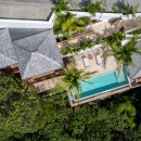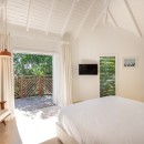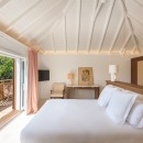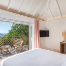 Villa La Bulle features four air-conditioned bedrooms, each with a king-size bed, television, and en-suite bathroom. Two bedrooms on the lower level share a furnished terrace overlooking the tropical garden, while the other two, located on the upper level, have independent access. One boasts a private ocean-view terrace, while the other includes a peaceful outdoor shower for a unique island experience. Thoughtfully designed with warm and soothing décor, each room is a sanctuary of relaxation.