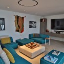 One of the four bedrooms is situated on the main floor, in close proximity to the pool. The second bedroom on the top floor boasts breathtaking panoramic views, while the remaining two share a terrace featuring a smaller infinity pool on a lower level. Additionally, one bedroom has the flexibility to convert into twin beds.