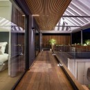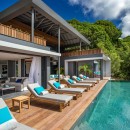 Most will want to dedicate much of their time relaxing on the pool terrace. Unlike many modern villas, this terrace stretches along an entire level, with the infinity edge pool offering stunning sea views. The wooden terrace is lined with oversized sun beds, and a separate, courtyard-like space offers a wonderfully comfortable outdoor lounge with banquette sofa, and direct access into the living room and kitchen areas.