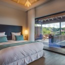 Each of the three bedrooms has been designed as a private, luxury retreat. One is on the main living level with the dining room and kitchen area, and the remaining two are on the next level above. The same "open to the air" feeling permeates each bedroom, with private terraces, enormous ensuite baths and truly stunning décor guarantee that any visitor will fall in love with the villa at first sight.