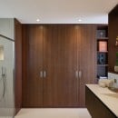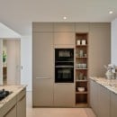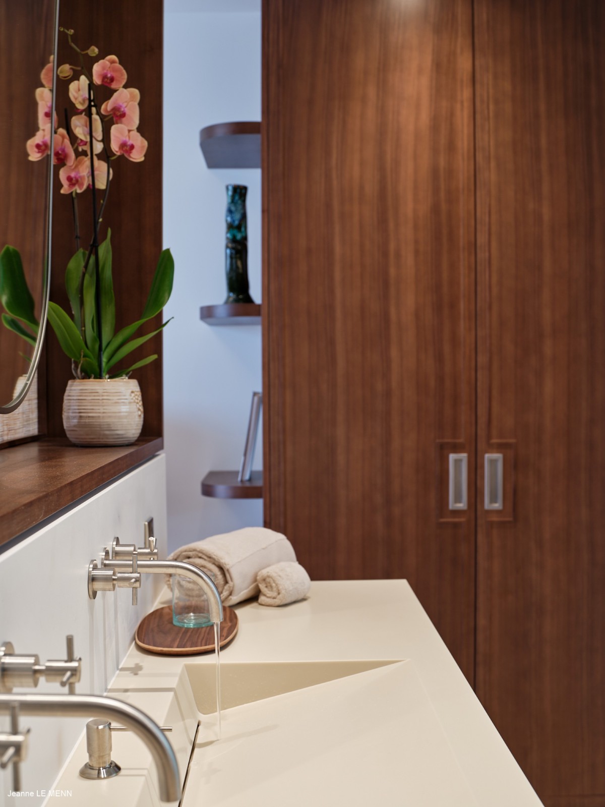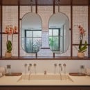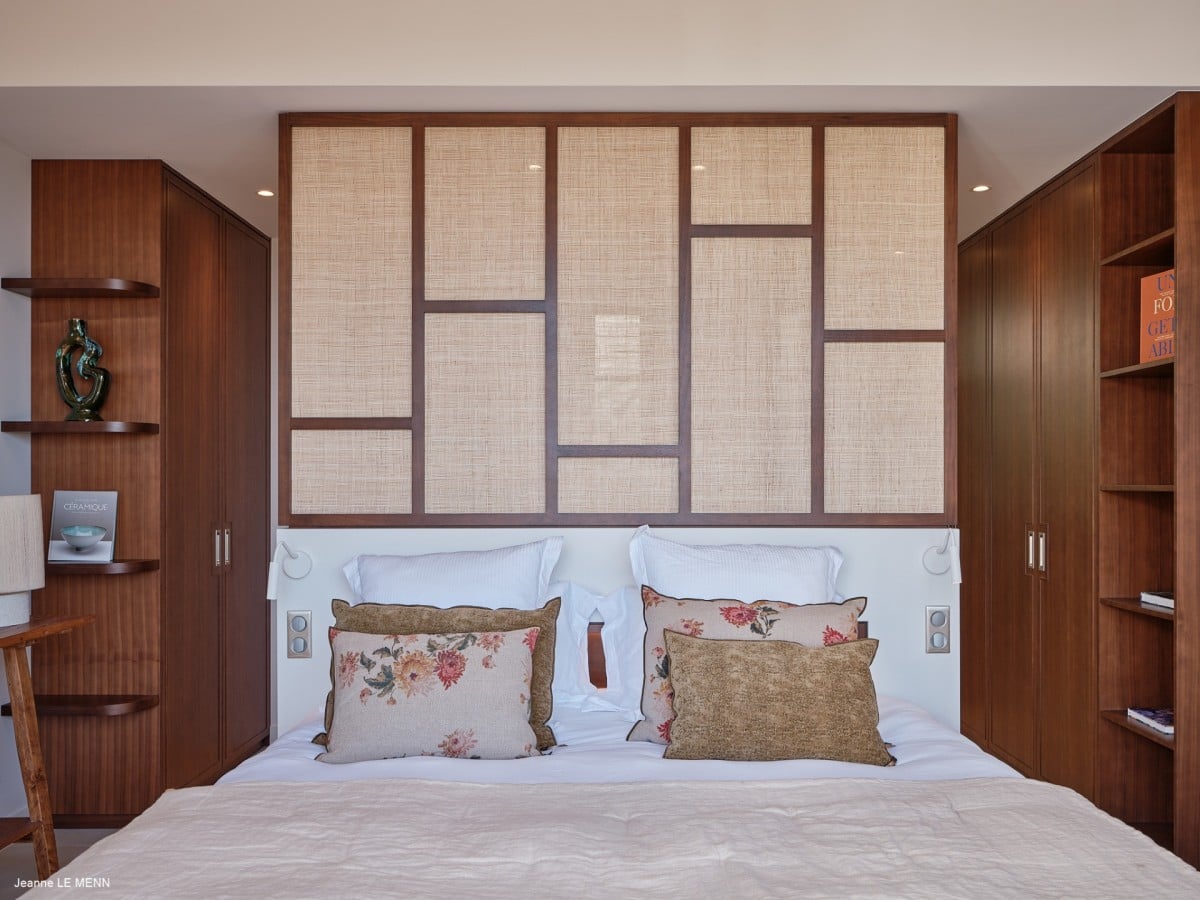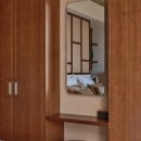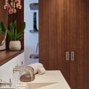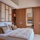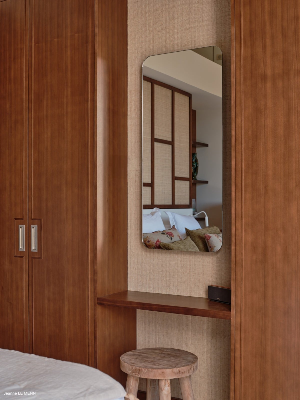 Inside, the villa showcases a minimalist, contemporary design with white and wood tones, high ceilings, and natural materials that fill each room with light and space. Clean lines and thoughtful details create a warm, modern, and welcoming atmosphere.