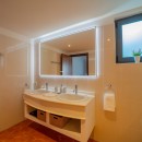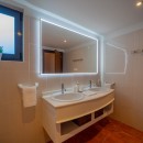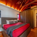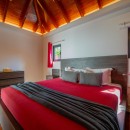 Villa Do Dragan features two air-conditioned bedrooms, each with a private en-suite bathroom. These adjacent yet private retreats offer ample closet space and are elegantly styled in soft whites and subtle red accents, complemented by rich wooden touches. Bright and spacious, the bedrooms provide a peaceful sanctuary for restful nights after sun-filled days.