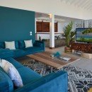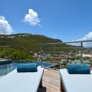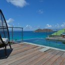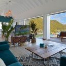 Villa Flamands Bay, St Barts. This attractive two-bedroom villa is settled on the hilltop to give you a most extraordinary vista. The natural wood floors line the inside of the property and the large sundeck surrounding the villa and the pool. Spend many peaceful hours in the l private pool while you look out at the sparkling waters of the Caribbean and the cloudless blue sky above. Enjoy a well-deserved glass of wine or an early morning cup of coffee in the teal velvet couch with an unobstructed view of the ocean. The seamless transition from outdoor to indoor living spaces makes the already spacious villa feel capacious. It is decorated in an eclectic contemporary fashion with teal blues and mid-century modern styles making appearances throughout the home. Dine outdoors on the veranda with a meal you prepared in the sleek and modern kitchen with stainless steel appliances and plenty of counter space.