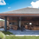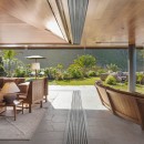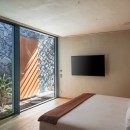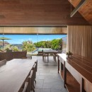 Perched at the pinnacle of the property, the main living pavilion unfolds in an expansive open-plan layout. Here, a fully equipped kitchen, multiple seating areas, and a generous dining zone flow effortlessly onto a shaded terrace—whose glass walls can be retracted for fresh sea breezes or closed off to enjoy air-conditioned comfort.
