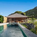 Conceived by acclaimed architect Isay Weinfeld in partnership with Bruneau Ghezzi Architectes, this five-bedroom villa harmonizes contemporary sophistication with the island’s lush natural terrain. Much of the structure is intentionally embedded into the hillside, seamlessly blending indoor and outdoor spaces.