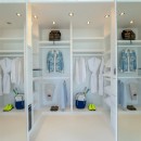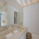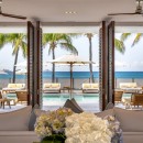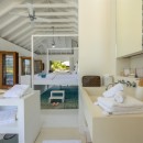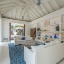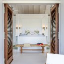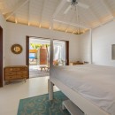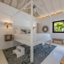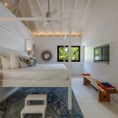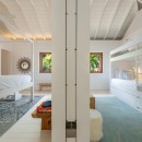 With six bedrooms, the property is quite expansive and includes a stately avenue of tall palms in the garden area. The design of the building is a visual delight as well with its blend of natural wood and stone. In the main portion of the villa, adjacent to the terrace and behind immense wooden shuttered doors is the great room. With high ceilings and a white and sea blue palette, it captures the air and sunlight. It features a stylish living room and lounge space. This opens into the formal dining suite, which leads to the large and bright kitchen. Designed to satisfy even the gourmets among you it provides the very finest appliances and opens to the gardens.