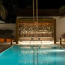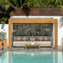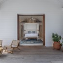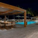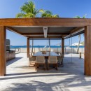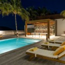 Designed to blur the lines between interior and exterior spaces, it features an enormous terrace that includes a large and private pool and oversized sun beds and sun chairs. At one end, a shady gazebo offers up a banquette on which you might toast sunset, sip coffee at sunrise, gaze up at late night stars or lounge with a good book. At the opposite end is the oversized dining pavilion with barbecue and seating for a crowd.