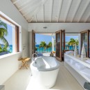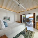 Bedroom 6: Main level bedroom with a king-size bed, ceiling fan, A/C, TV, safe, ocean view, access to the pool terrace, and en-suite bathroom with shower, double vanity and WC. 2 guests maximum