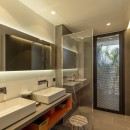 There are three bedrooms, each of which can accommodate two guests. All have king size beds, satellite television, Apple TV, air conditioning and en suite baths. The décor is very modern, done in cool tones to complement the ocean atmosphere.