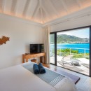 Bedroom 2: King Bed, Air Conditioning, DVD Player, Ensuite Bath, Flat Screen TV, In-room Safe, Screens, WiFi Terrace opens to ocean view. Ensuite bathroom with double vanity and covered outdoor shower.