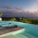The design of this three-bedroom villa also relies on an open floor plan, and this too allows visitors to enjoy the scenery from the living room, any of the dining areas, and even from the gourmet kitchen. A dining pavilion features retractable glass doors that allow you to enjoy the endless breezes and to bring the outdoors in. Of course, the overall design of the Villa Bellissima includes the use of natural materials such as stone and wood (along with a pale palette) to enhance your experience of the Caribbean setting.
