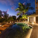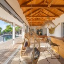 The villa’s backyard garden provides extra opportunities for relaxation, including a ping pong table. From the terrace, enjoy breathtaking ocean views, glimpses of nearby islands, and the occasional pink hue of the sunset.