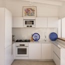 The villa is thoughtfully arranged with a main building and a separate bungalow, both opening onto a magnificent panorama. Inside the main house, the warm and welcoming living area features a comfortable sofa, HD television, and a cozy office corner with a small library, all set beneath a vaulted ceiling. Natural light flows through wide openings and louvered windows, creating a serene connection with the surrounding greenery. The fully equipped kitchen opens directly onto the terrace and pool area, making it easy to prepare and enjoy meals while taking in the stunning ocean views.