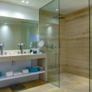 Bedroom 2: Main floor bedroom with a king-size bed, A/C, WiFi, TV, safe, sea view, private terrace with access to the pool, and en-suite bathroom with outdoor shower, shower, double vanity, and WC. 2 guests maximum.