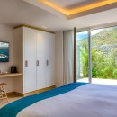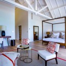 Bedroom 5: Upper floor bedroom with a king-size bed, lounge area, A/C, WiFi, TV, safe, office, ocean view, private terrace, walk-in closet and en-suite bathroom with bathtub, shower, double vanity, and WC. 2 guests maximum.