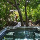 For extra relaxation, a hidden hot tub is tucked away at the end of a short path behind the villa, providing a serene spot to unwind after a day of exploring the island.