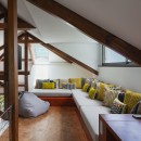 Upon entering, you’re welcomed into a bright and spacious living area. The fully equipped contemporary kitchen, fitted with modern appliances, flows seamlessly into the dining area, making it perfect for sharing meals. The main living room, with its high ceilings, offers a warm, inviting atmosphere. Large bay windows connect the indoor space to the outdoor deck, where a small swimming pool, sunbathing area, dining table, and lounge await—creating the ideal blend of indoor and outdoor living.