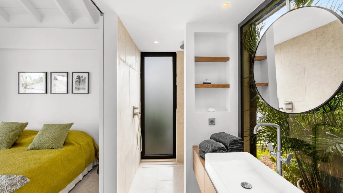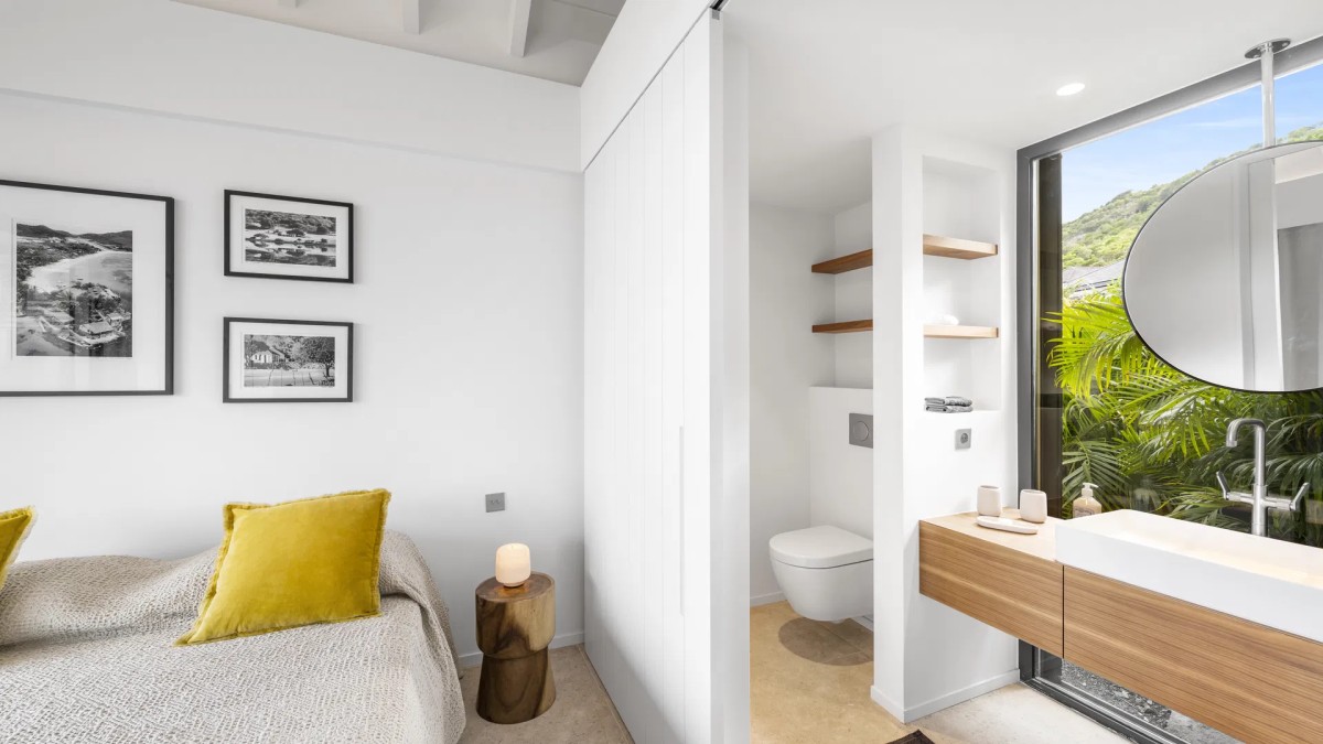 Bedroom 1: Upper floor bedroom with a queen-size bed, A/C, HD-TV, Apple TV, safe. private terrace and adjoining bathroom with shower, vanity and WC. 2 guests maximum