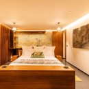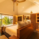 Every bedroom is a suite with its own en-suite bathroom featuring a shower and views of the lagoon and ocean. Equipped with home automation-controlled televisions and an exceptional sound system, each suite ensures comfort and luxury. The villa’s design strikes a perfect harmony between communal and private spaces, making it ideal for groups of friends who enjoy gathering while cherishing their personal space.
