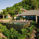 Villa Larimar takes its name from the serene stone symbolizing tranquility and comfort. Perched slightly higher than its counterparts, this villa boasts unparalleled views of the lagoon. A picturesque staircase winds around a preserved tree at the entrance. Families will appreciate the stone path cutting through the lush garden leading to the main level, where local turtles often roam.