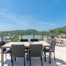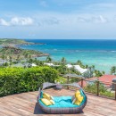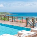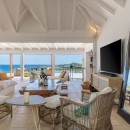 Outside, the villa’s front terrace offers a truly spectacular view of the bay. A beautiful swimming pool, surrounded by loungers and sun decks, provides the perfect setting for relaxing in the Caribbean sun.