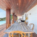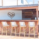 Spanning two levels, Villa Nala features expansive living areas and terraces that invite you to soak up the sun and scenery. The open-concept living room boasts a high white vaulted ceiling, a plush white sofa, a wooden coffee table, and a large HDTV—perfect for cozy movie nights. Adjacent is a stylish, fully equipped kitchen with a breakfast bar, ideal for preparing delicious meals. The indoor dining area, which seats up to eight, opens directly onto sweeping views of the turquoise lagoon. For those who prefer to dine outdoors, there are two alfresco dining spaces, plus a bar area—perfect for sipping cocktails under the stars.