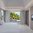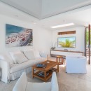 The heart of the villa is the great room. With high, white ceilings, white marble floors and bright white furnishings and décor, it is a very soothing space. It includes the cozy living room and entertainment system as well as the dining area and kitchen. Furnished with the best appliances, it also takes in the scenery just outside and ensures you don't miss a thing as you make meals or drinks.