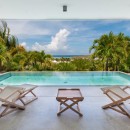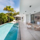 The view from inside includes the stunning pool terrace, which includes an infinity edge pool, sun deck and yard that leads to the dining gazebo. With a full al fresco dining room and outdoor kitchen, it is a great spot to relax in the shade of the palms.