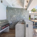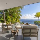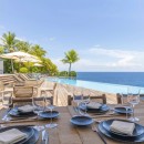 The outdoor area is a haven for relaxation and entertainment. The infinity pool appears to blend seamlessly with the horizon, offering a refreshing respite amidst the island's beauty. Guests can unwind on the sun-kissed terrace, lounge in the shade of the gazebo, or enjoy alfresco dining while relishing spectacular sunsets over the ocean.