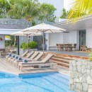 The villa features spacious living areas adorned with tasteful furnishings and exquisite decor, creating an inviting ambiance for relaxation and entertainment. The open-plan layout effortlessly connects the indoor and outdoor spaces, allowing guests to savor the tropical breeze and stunning vistas from various vantage points.