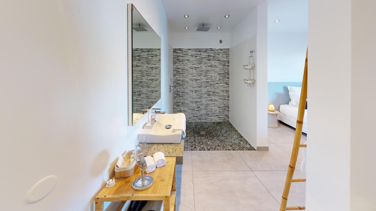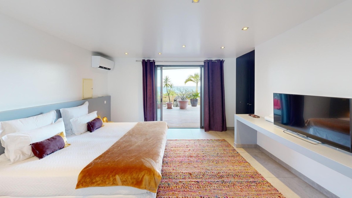 Bedroom 1: Bedroom with a king-size bed, A/C, safe, ocean view and en-suite bathroom with shower, vanity and wc. 2 guests maximum.