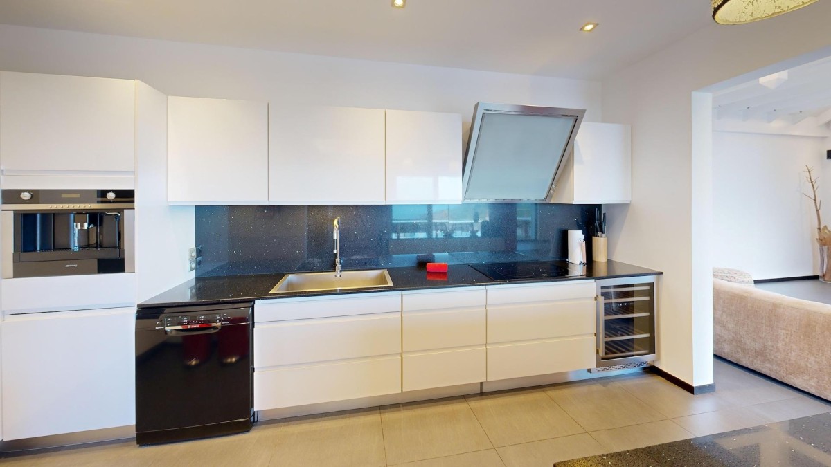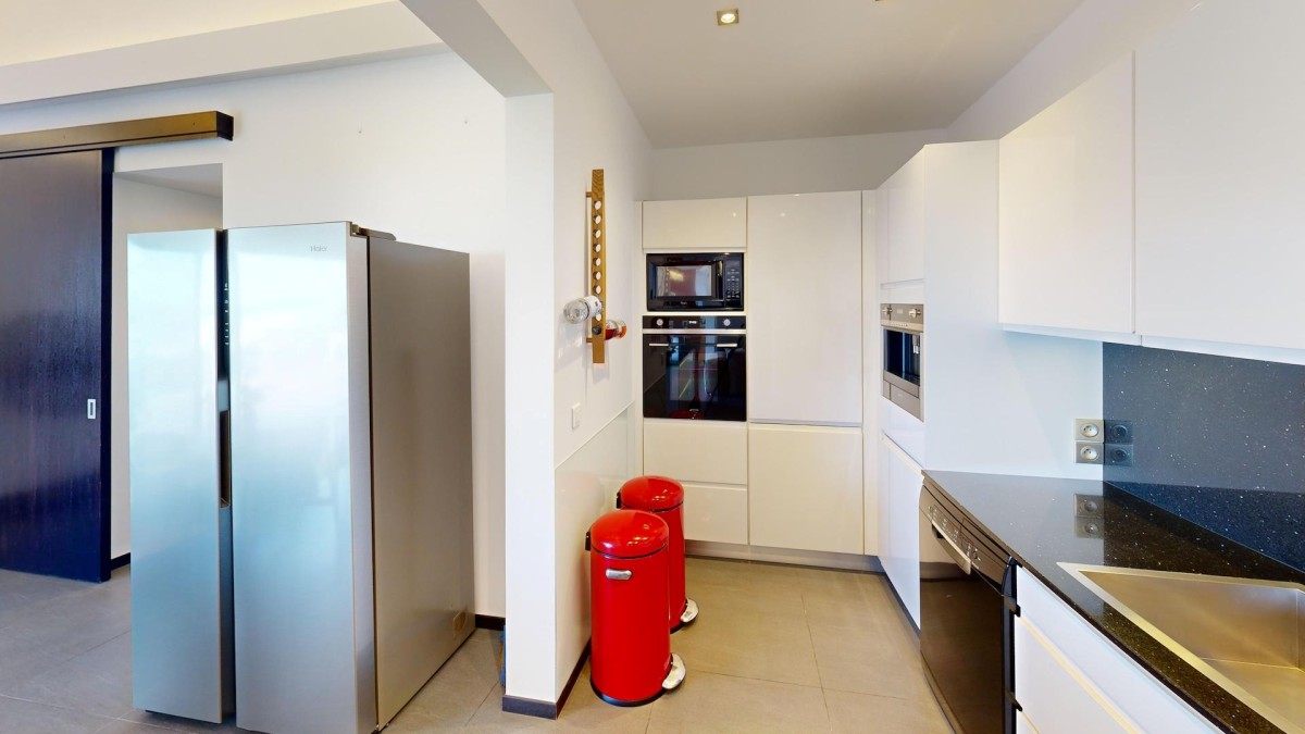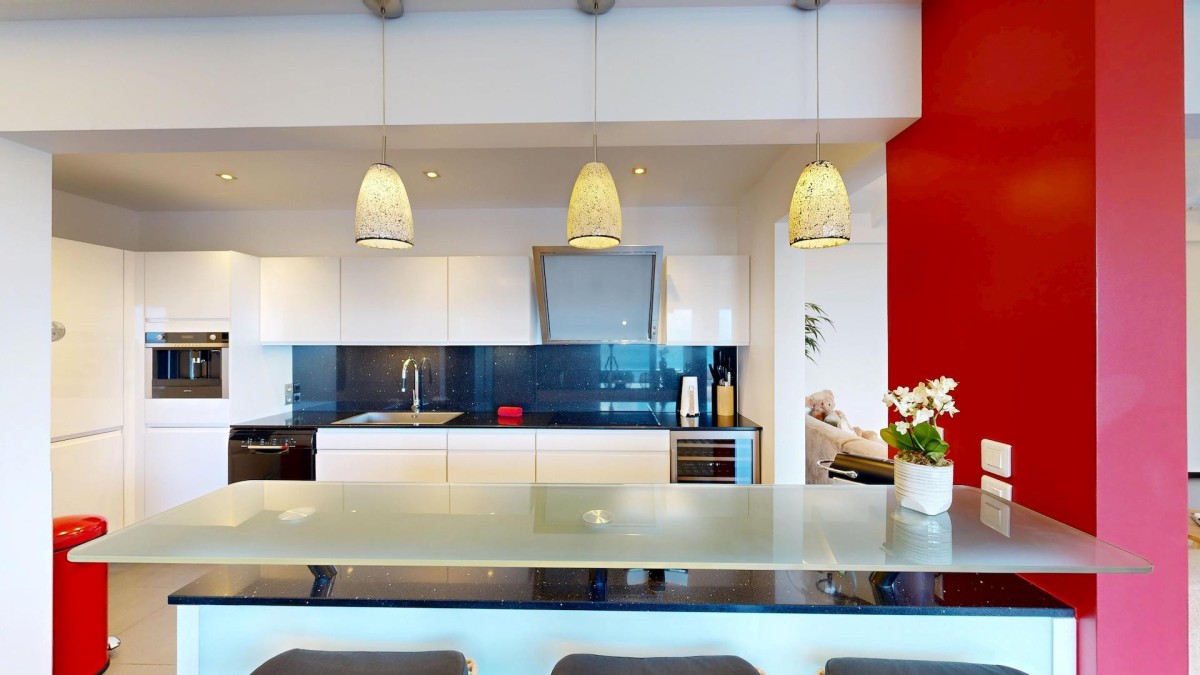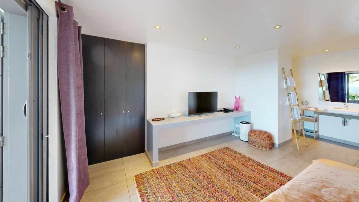 Step inside to discover a welcoming open living space that flows seamlessly onto a spacious terrace and a heated pool, inviting you to soak in the island’s beauty. Adjacent to the living area, a stylish TV room with high-end decor provides a cozy sanctuary for unwinding. The fully equipped kitchen ensures effortless culinary experiences.