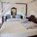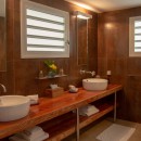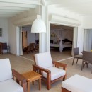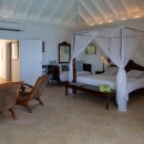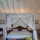 The great room features a beautifully furnished living room space, which uses mahogany pieces against the white palette to create a Spanish colonial feel. This carries over into the bedroom area with its enormous, four-poster king bed surrounded by a screen of romantic netting. There is also a stylish work desk for those who need to get online while on holiday. The luxurious bath is a Zen-like retreat that emphasizes natural materials and spaciousness.