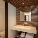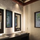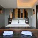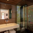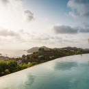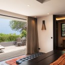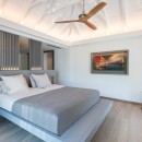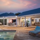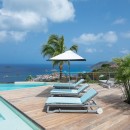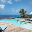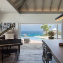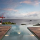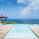 The focal point is the western-facing views out over the ocean and bay. With a daily sunset a sure thing, you can then get busy familiarizing yourself with the fun to be had all along the pool terrace. An innovative t-shaped pool features an infinity-edge that curves gracefully to wrap the deck, but is also framed on two sides by the wooden terrace. At one far end of the curve, is a swim up bar housed in a sunken lounge, and all covered with a tiki-style hut.