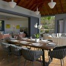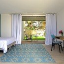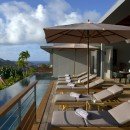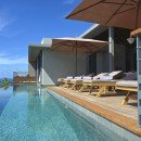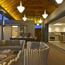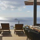 Floor to ceiling glass doors slide open and ensure that every delicious sea breeze or moment of scenery is not missed whether visitors are working in the gourmet-friendly kitchen with its open-air design and high-end appliances, sitting at the breakfast bar or dining area, or lounging in the incredibly unique living room with its entertainment system and inspired furnishings. Also, the cool and shaded outdoor lounged at the back of the villa will also be a constant attraction, particularly during the heat of the day or when a low-key gathering is the focus.